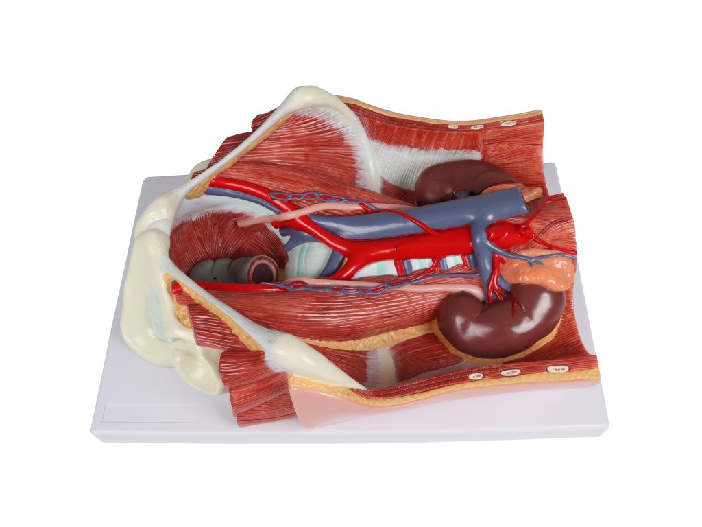 Anatomický model K569 zobrazuje močový systém pre mužské aj ženské anatomické vsadenie. Model má 6 dielov: obličku s nadobličkou, veľké cievy (aorta + dolná dutá žila), výplne pre mužov (močový mechúr + prostata) a pre ženy (mechúr + maternica + vaječníky). Jeden predný polovičný rez obličky je odnímateľný na detailnú štúdiu.