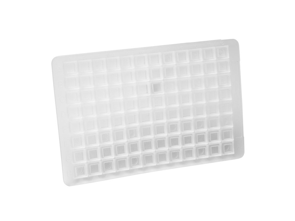 Varianty vyrobené z polypropylénu (PP) majú vysokú chemickú odolnosť (napr. voči DMSO) a sú autoklávovateľné pri 121 °C. Plast PS ponúka vynikajúcu optickú čistotu a je vhodný pre menej agresívne aplikácie.