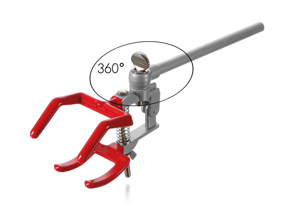 Čeľuste sú potiahnuté vinylom, čo zaisťuje šetrné, neabrazívne a protišmykové uchytenie laboratórneho skla, najmä kondenzátorov.