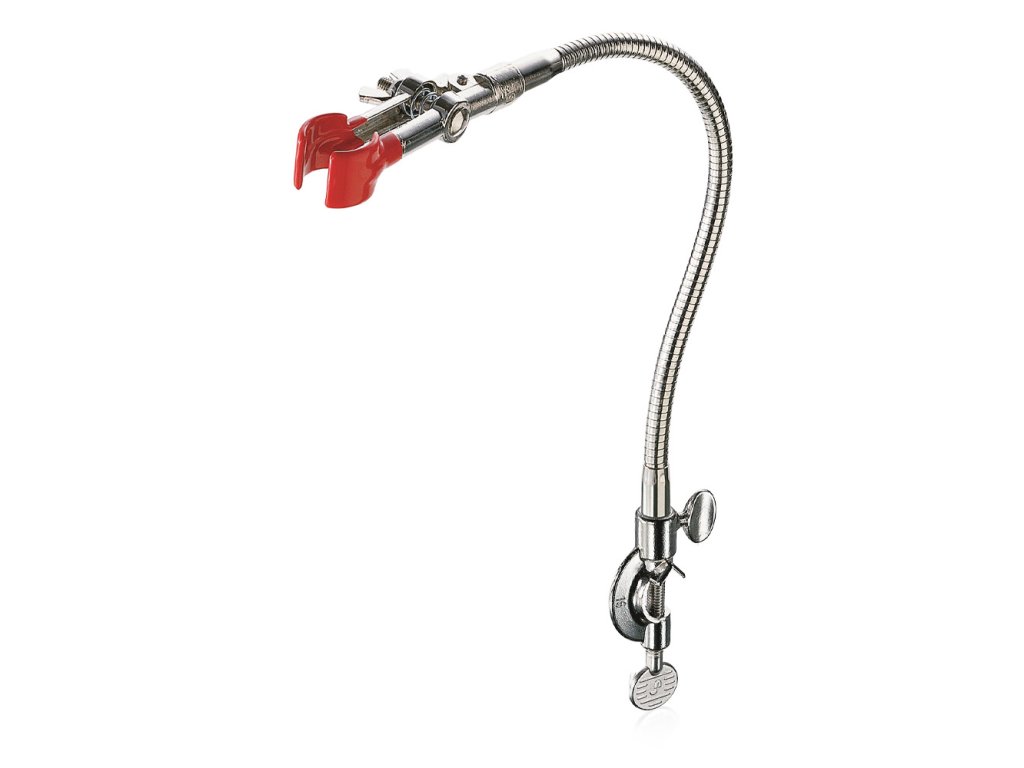 Flexibilný laboratórny držiak so svorkou, s čeľusťami z tlakovo liateho zinku potiahnutými vinylom, ohybnou rúrkou z niklom pokovanej mosadze s dĺžkou 300 mm a nosnosťou do 0,4 kg.