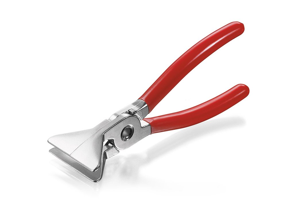 Kliešte na skúmavky z tlakovo liateho zinku s niklovaným povrchom, vinylom potiahnutými rukoväťami a šírkou ústia 59 mm.