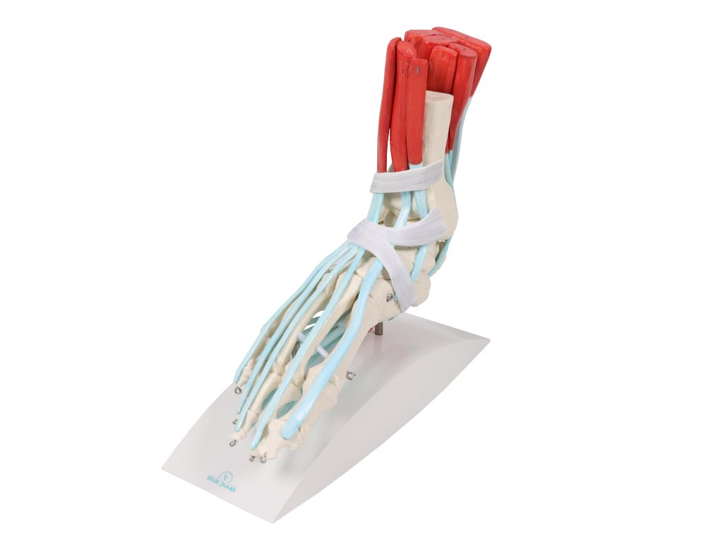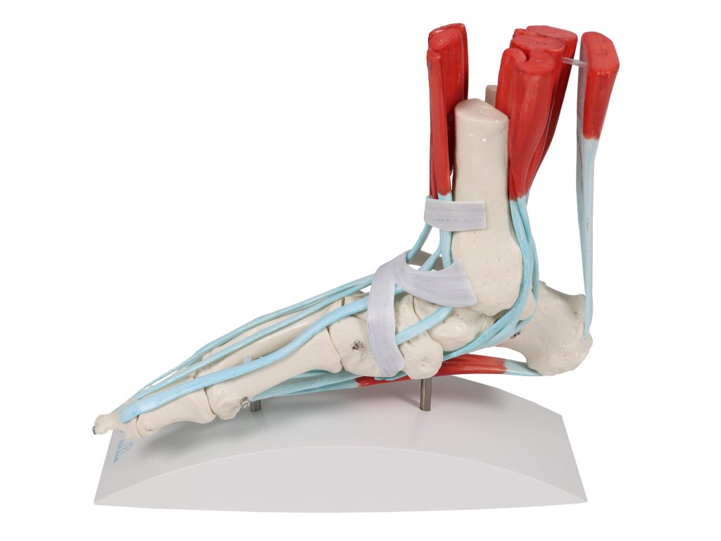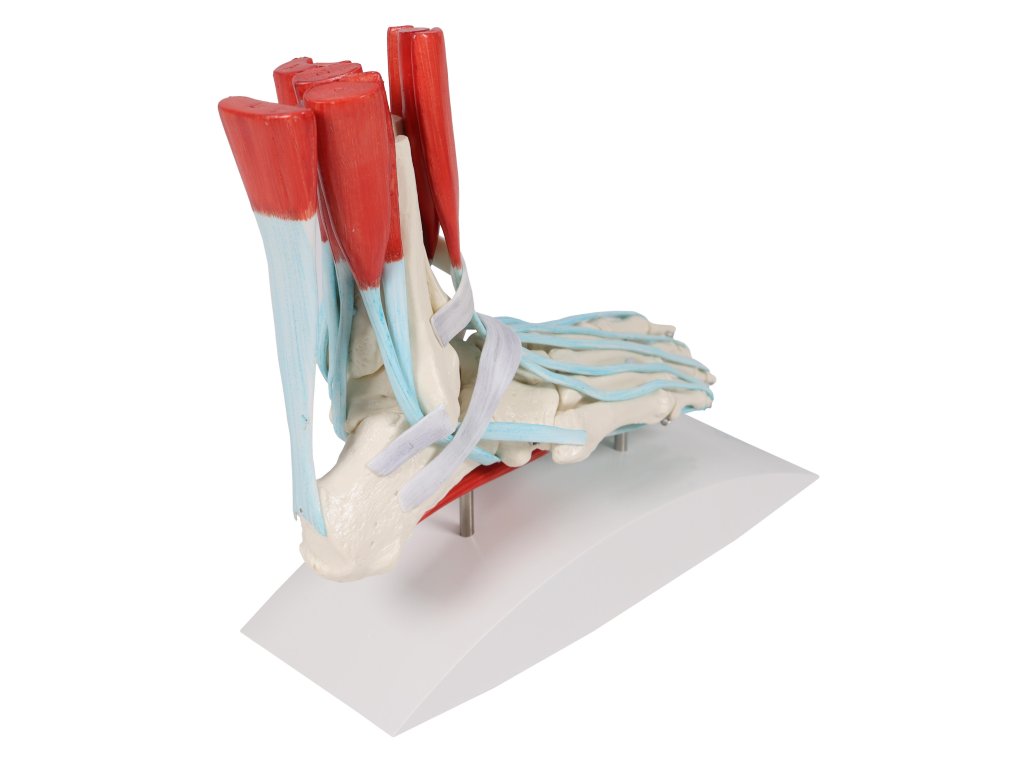 Kostra chodidla s väzmi 6052 je anatomický model v životnej veľkosti zobrazujúci kosti chodidla, začiatky tibie a fibuly, svaly a väzy, dodávaný so stojanom a popisnými kartami.