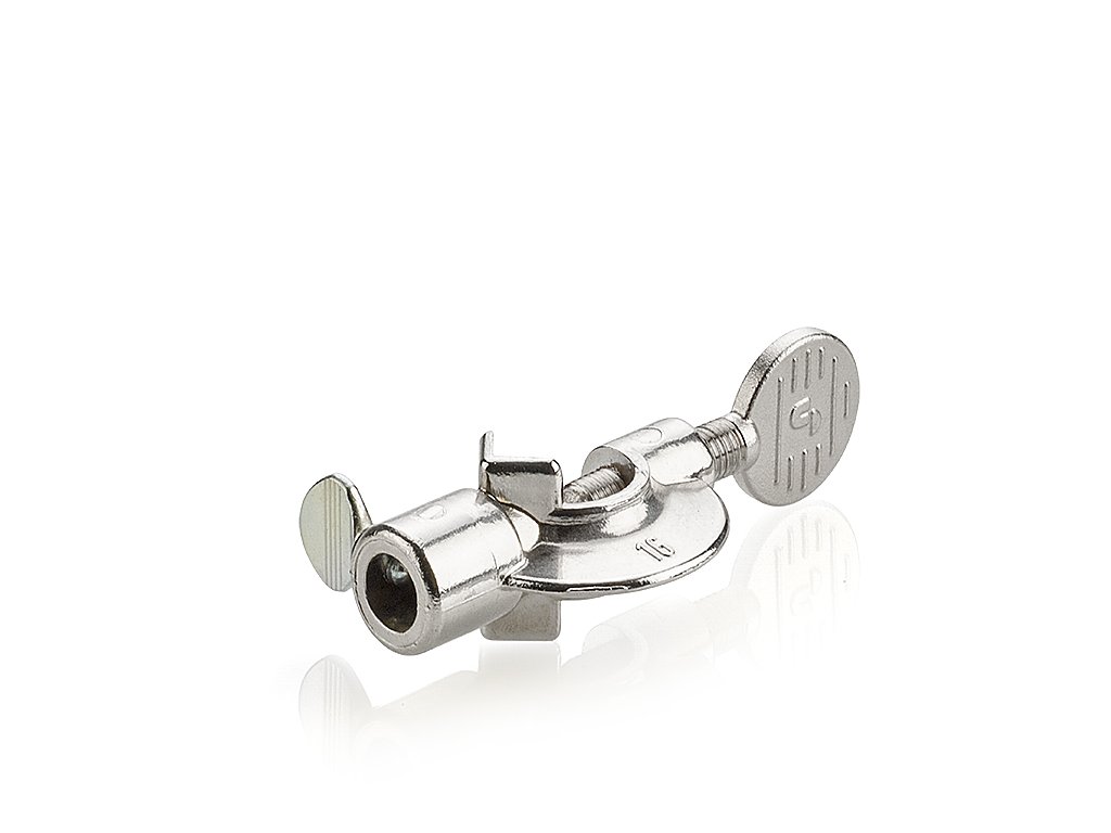 Laboratórna svorka určená pre tyče s priemerom do 16 mm. Disponuje poniklovanými mosadznými skrutkami a má umiestňovací otvor 10 mm.