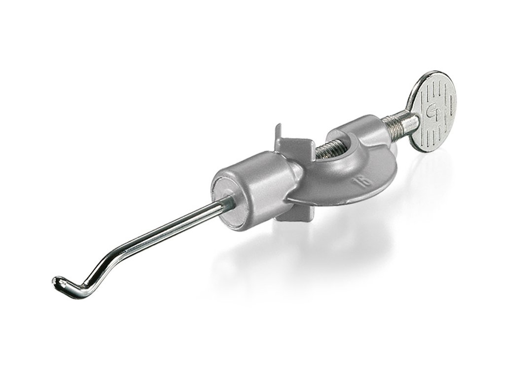Laboratórna svorka s hákom určená pre tyče s priemerom do 16 mm. Disponuje poniklovanými mosadznými skrutkami, ktoré zabezpečujú pevné a spoľahlivé uchytenie.