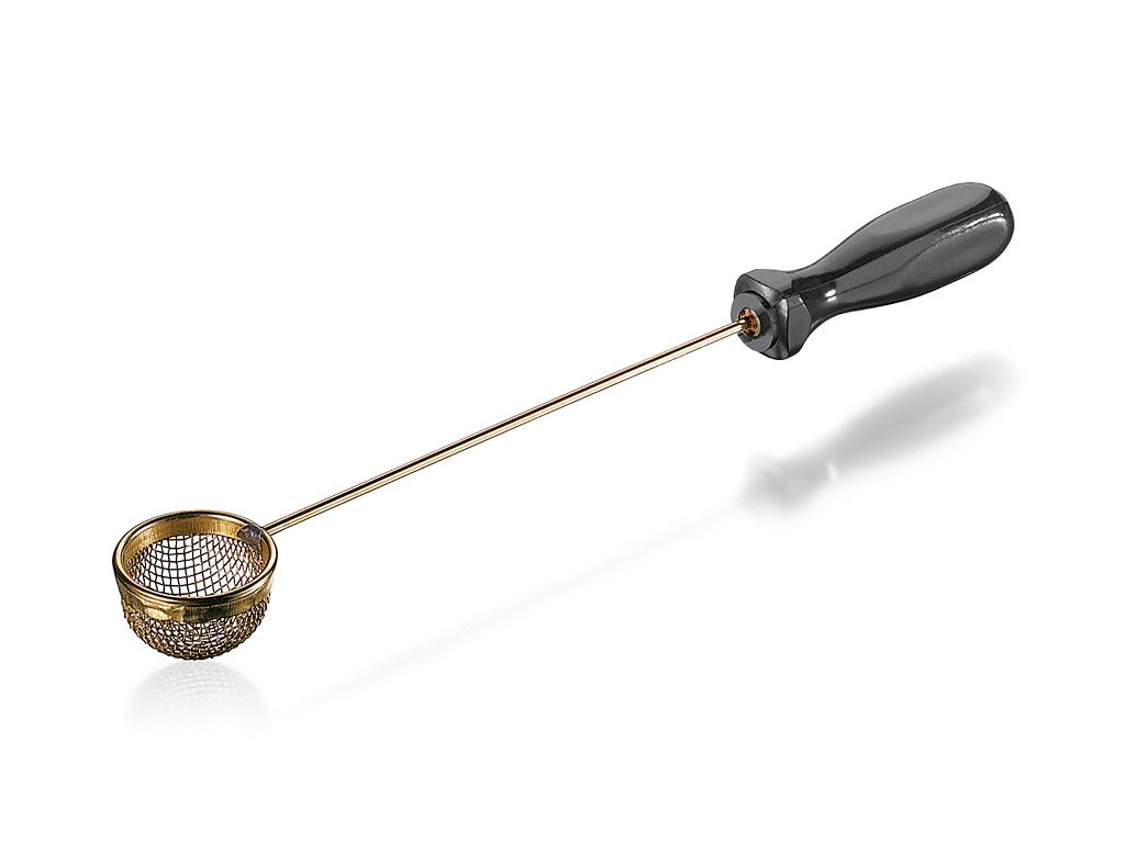 Lyžica na sodík s medeným košíkom Ø 25 mm a celkovou dĺžkou 180 mm.
