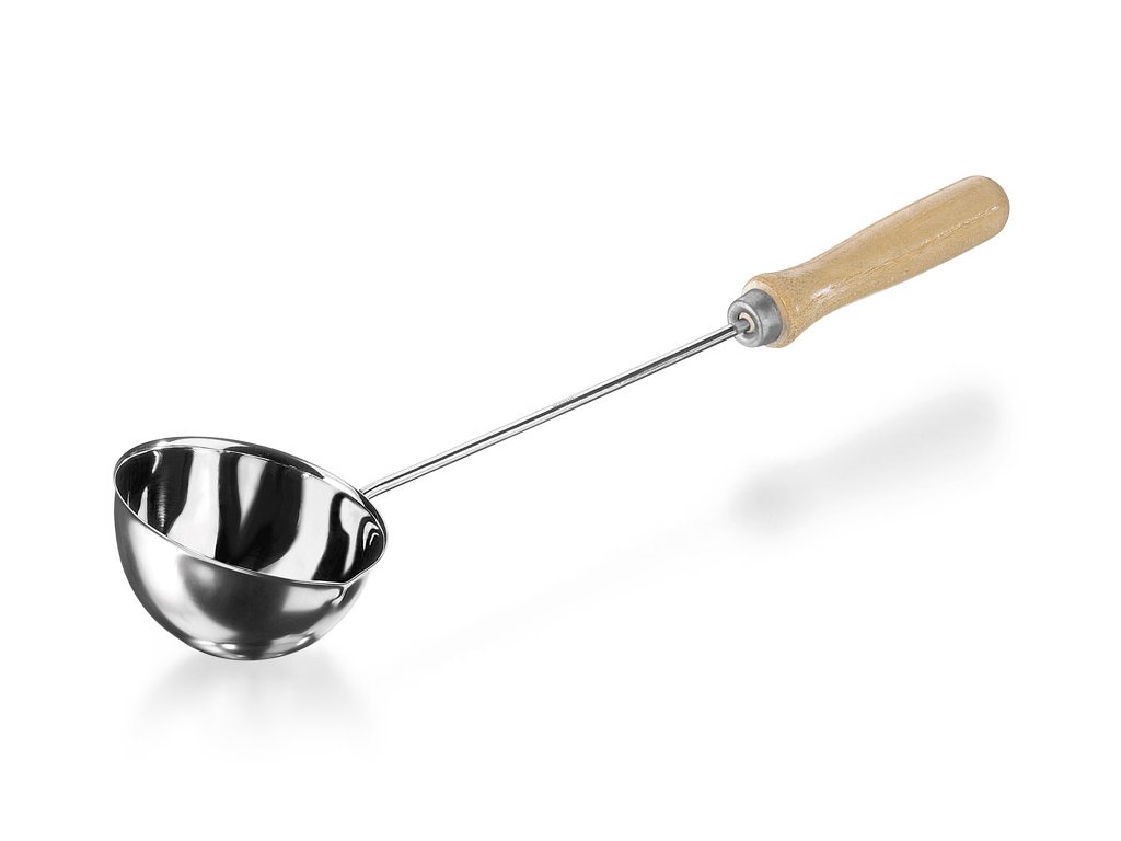 Naberačka z nehrdzavejúcej ocele s téglikom Ø 75 mm a celkovou dĺžkou 275 mm.