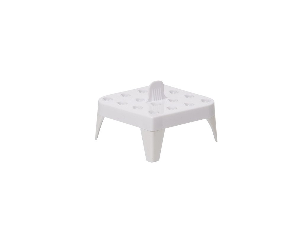 Univerzálny plávajúci stojan štvrcový LABSOLUTE® SMART z bieleho PP pre 1,5 ml a 2,0 ml mikro skúmavky. Vhodný na použitie vo vodnom kúpeli, na ľade alebo na stole. Odnímateľné nožičky, Balenie 4KS