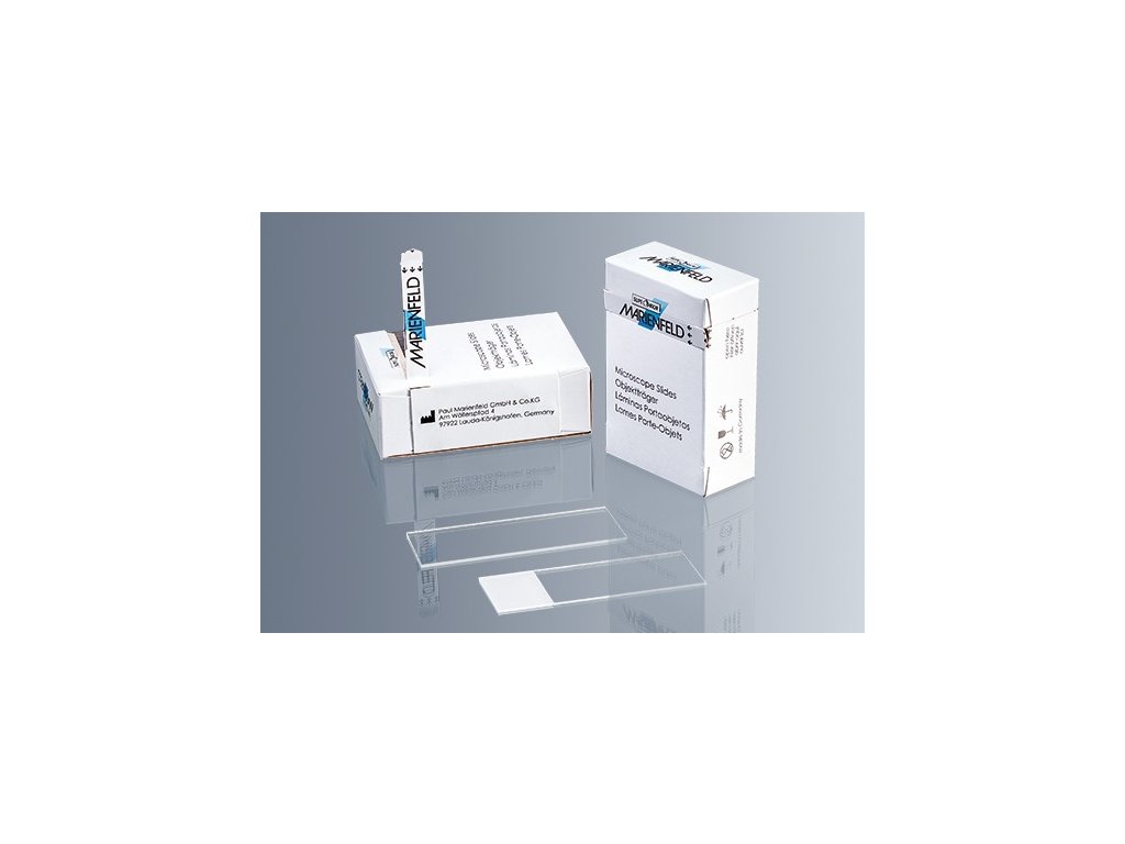 Podložné sklíčko, matovaná plôška, zabrúsená 45° , 76 x 26 x 1 mm, (1 bal. x 50 ks), MARIENFELD – kvalitné podložné sklíčko na mikroskopické pozorovanie. Výrobca: Marienfeld