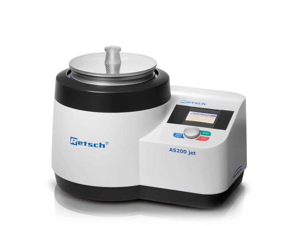 Prúdový sitovací stroj RETSCH AS 200 Jet je špecializované zariadenie určené pre materiály s nízkou hustotou a veľmi jemné častice, ktoré majú tendenciu aglomerovať. Vhodný je pre sitá s veľkosťou ôk od 10 μm a pokrýva merací rozsah 10 μm – 4 mm.