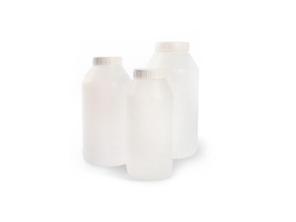 Širokohrdlé fľaše z HDPE s uzáverom sú ideálne pre bezpečné skladovanie hustých kvapalín, práškov a granulátov.