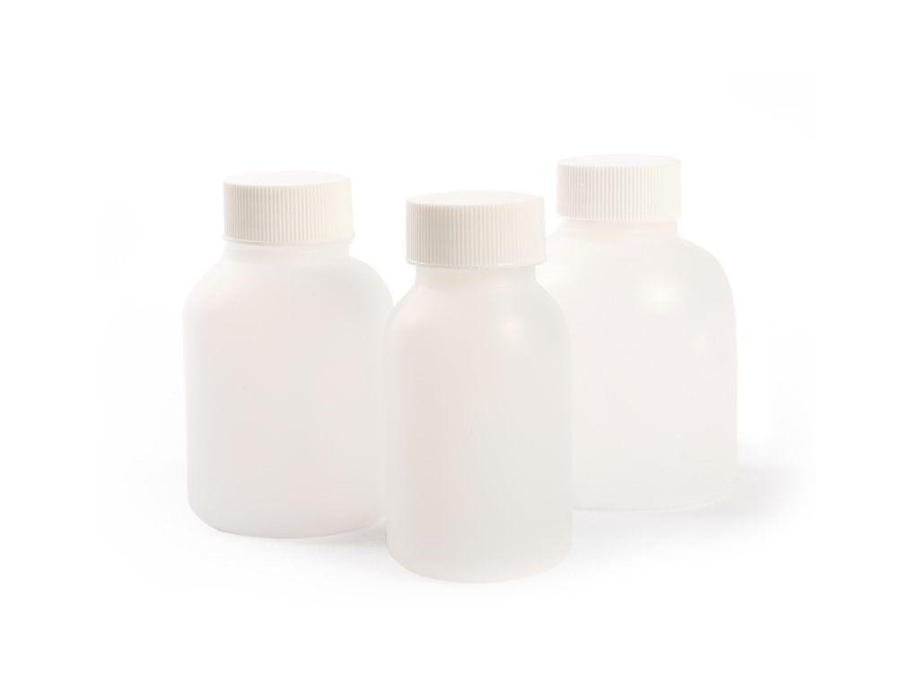 Širokohrdlé fľaše typu short sú vyrobené z vysokohustotného polyetylénu (HDPE) v neutrálnej farbe a sú určené aj na potravinárske použitie.