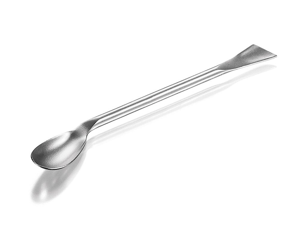 Špachtľa s lyžičkou z nehrdzavejúcej ocele 1.4301 so zahnutou lyžičkou a šírkou lyžičky 19 mm.