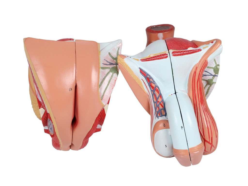 Hlavička a krk sú otvorené, aby bolo možné preskúmať mozog, štítnu žľazu, krvné cievy a svaly. Vymeniteľné pohlavné orgány (mužské a ženské) rozširujú využitie modelu pre všestranné vyučovanie.