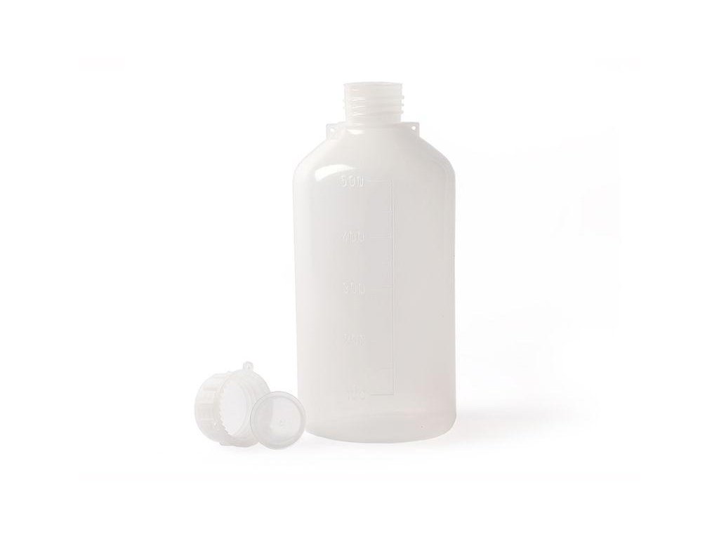 Úzkohrdlá graduovaná fľaša je vyrobený z nízkohustotného polyetylénu (LDPE) v neutrálnej farbe a je schválený pre kontakt s potravinami. Vhodná najmä pre veľmi tekuté látky, kde kontrolované dávkovanie a bezpečné uzavretie sú kľúčové.