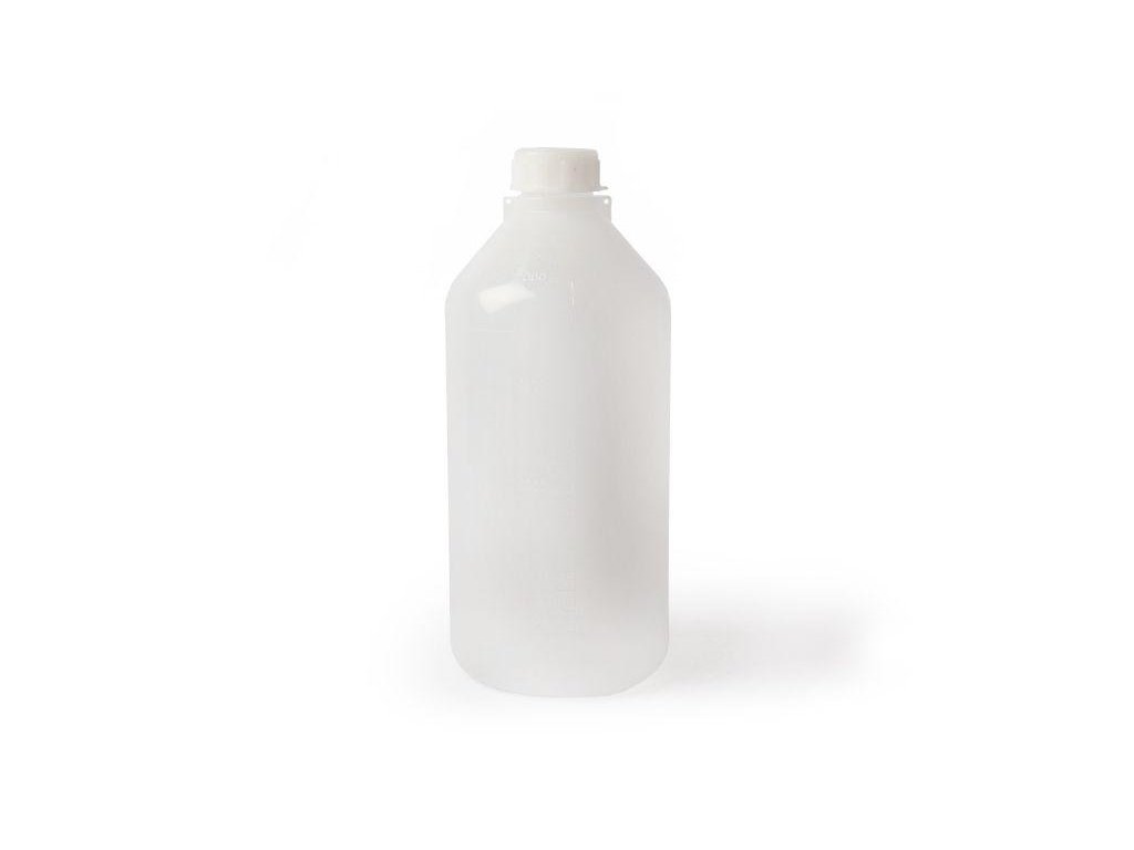 Úzkohrdlá graduovaná fľaša z LDPE v neutrálnej farbe, vhodná na kontakt s potravinami. Disponuje vnútorným viečkom pre pevnú tesnosť a otvormi na vrchnáku a ramene pre možné plombovanie.
