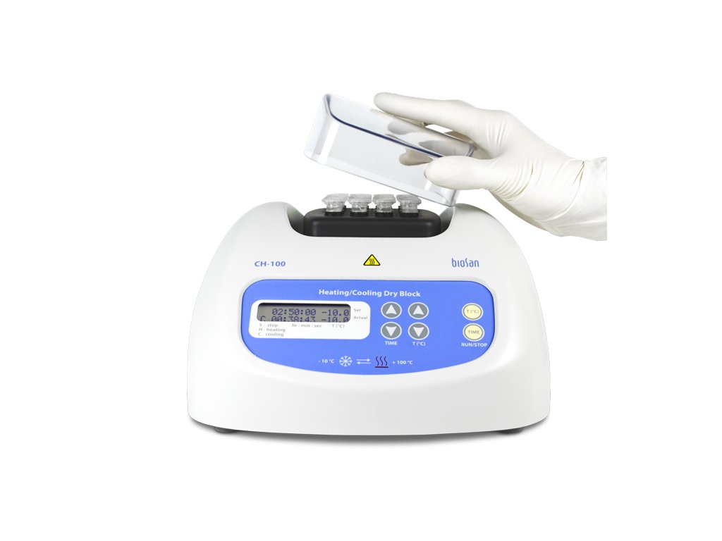 Vyhrievací/chladiaci suchý blok CH-100 je moderný laboratórny prístroj, ktorý spája výhody ohrevného aj chladiaceho bloku. Vďaka konštrukcii s hliníkovým blokom a Peltierovým modulom s ventilátorovým chladením umožňuje rýchle prepínanie medzi režimom chladenia a ohrevu. Tento prístroj je obzvlášť účinný pri príprave vzoriek počas enzýmových reakcií, hybridizačných reakcií a analýzy DNA.